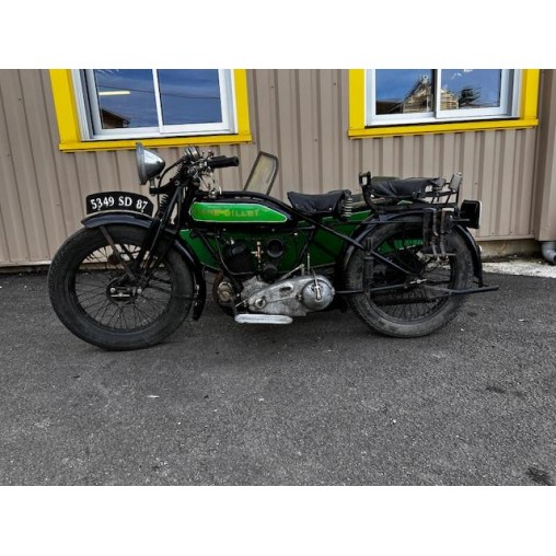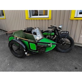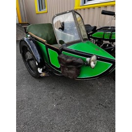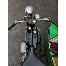 René Gillet 350 type H de 1928, tournante, attelé à un side car CG, tableau de bord avec montre et compteur, ampèremètre, toutes ces clefs sont présent, carte grise d'origine solo side car.