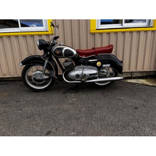 Maïco 400 taifun, de 1955, complète, manque le cache avant droite sur la roue, compteur avec indicateur de rapport engagé, jamais restaurer, état d'origine.