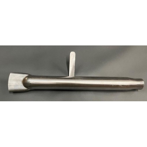 Unpainted steel exhaust muffler for Terrot 250cc models.